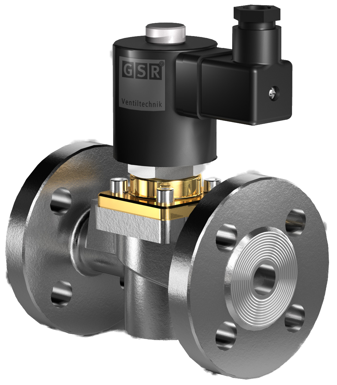 Vid spänning lyfts ankaret från pilothålet och lyfter kolven direkt eller med hjälp av mediatrycket. Ventilen stänger med fjäderkraft.